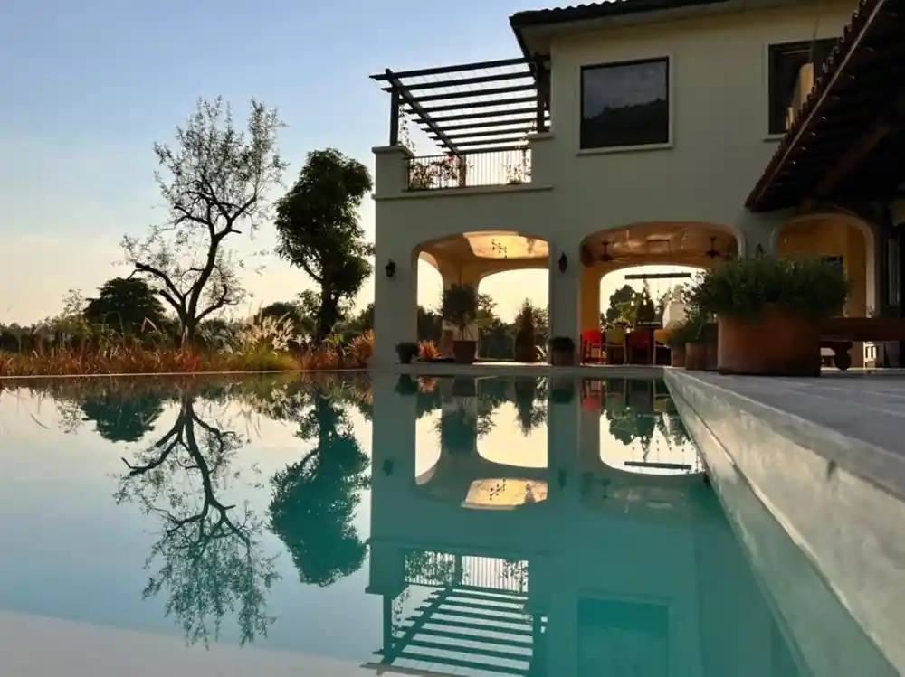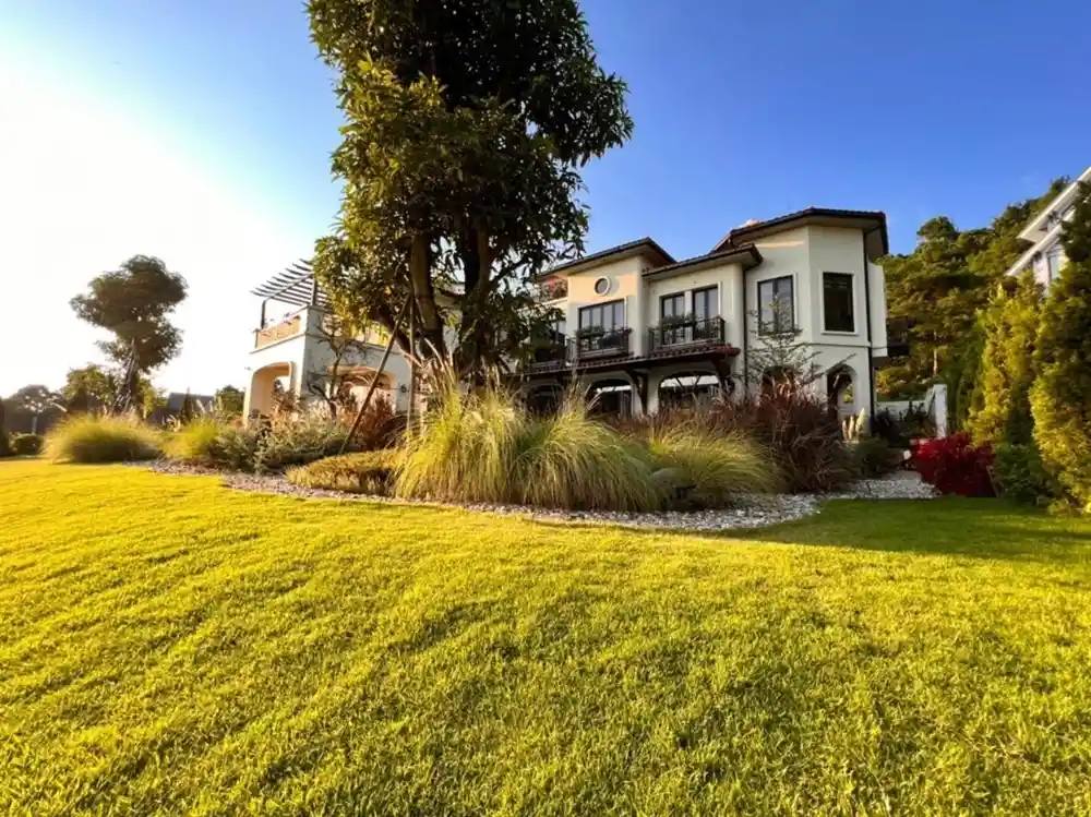 Casa XIX is located on a plot of land over 1500m2, surrounded by a natural stream connecting to the Tam Dao golf course, in Tam Dao commune, Phu Tho province. With a Tuscany, Italian design, Casa XIX Villa is specially designed in Mediterranean architecture with lots of green trees surrounding it. The front yard is impressively designed with a cactus garden as a place to relax, sip a cup of coffee in the morning, helping visitors immerse themselves in nature with dancing purple reeds, a cold, proud cactus garden, soft gravel roads leading visitors from one surprise to another, with the singing of the pine forest and the whispering of the stream flowing around the house. The backyard is planted with Japanese lavender bushes with a gentle fragrance. The lush green lawn is an ideal place for sports activities such as soccer, badminton and organizing outdoor parties…